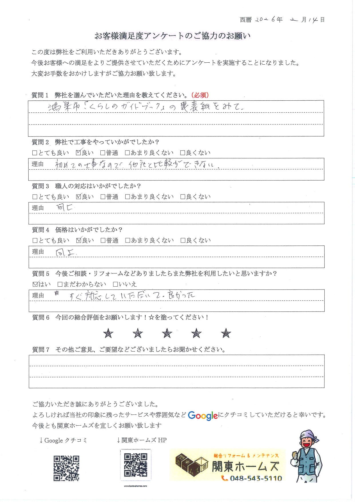 Q2 関東ホームズで工事をやっていかがでしたか?